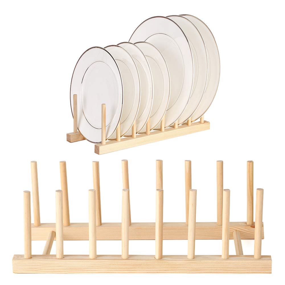 Buy 2 Packs Plate Racks Stand Pot Lid Holder Bamboo Wooden Dish Racks Kitchen Cabinet Organizer Dish Drying Rack For Bowl Cup Cutting Board Holder Dish Drainer For Kitchen Counter Top Online Large plate rack with shelving and cup hooks.